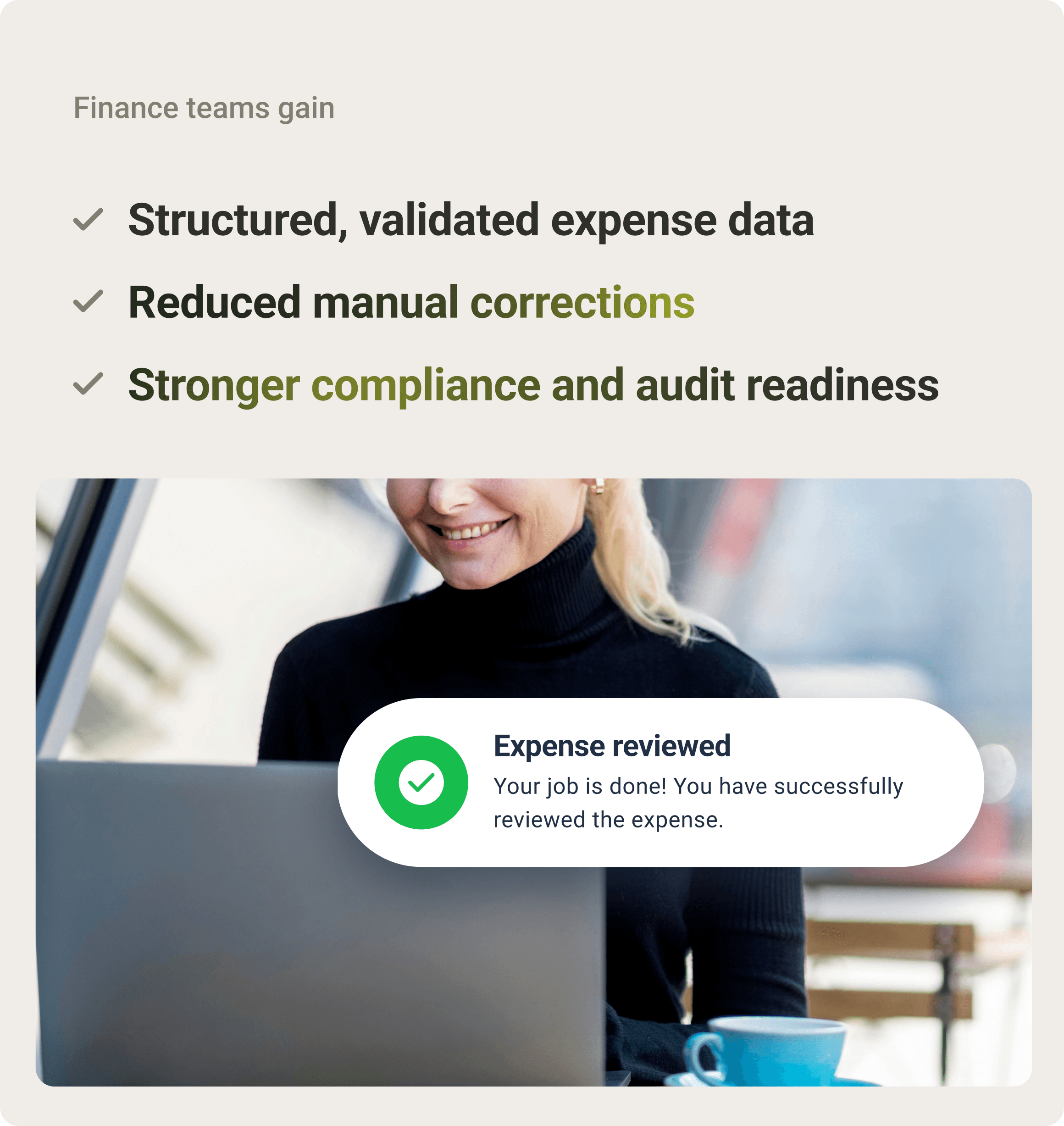 Policies, approvals, cost codes, and audit trails are part of the expense flow — not something finance has to fix after the fact.